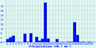 | Statistiques du mois | | Jours de fortes chaleurs (Tmax >= 30°C) | 0 | | Jours de très fortes chaleurs (Tmax >= 35°C) | 0 | | Jours avec nuit tropicale (Tmin >= 20°C) | 0 | | Jours avec gelée (Tmin <= 0°C) | 0 | | Jours avec forte gelée (Tmin <= -5°C) | 0 | | Jours sans dégel (Tmax <= 0°C) | 0 | | Jours avec pluie (RR >= 1mm) | 13 |
