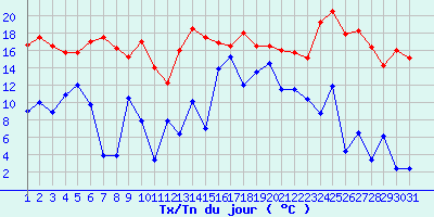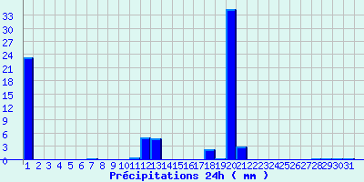 | Statistiques du mois | | Jours de fortes chaleurs (Tmax >= 30°C) | 0 | | Jours de très fortes chaleurs (Tmax >= 35°C) | 0 | | Jours avec nuit tropicale (Tmin >= 20°C) | 0 | | Jours avec gelée (Tmin <= 0°C) | 0 | | Jours avec forte gelée (Tmin <= -5°C) | 0 | | Jours sans dégel (Tmax <= 0°C) | 0 | | Jours avec pluie (RR >= 1mm) | 6 |