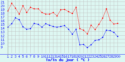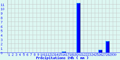 | Statistiques du mois | | Jours de fortes chaleurs (Tmax >= 30°C) | 0 | | Jours de très fortes chaleurs (Tmax >= 35°C) | 0 | | Jours avec nuit tropicale (Tmin >= 20°C) | 0 | | Jours avec gelée (Tmin <= 0°C) | 0 | | Jours avec forte gelée (Tmin <= -5°C) | 0 | | Jours sans dégel (Tmax <= 0°C) | 0 | | Jours avec pluie (RR >= 1mm) | 2 |